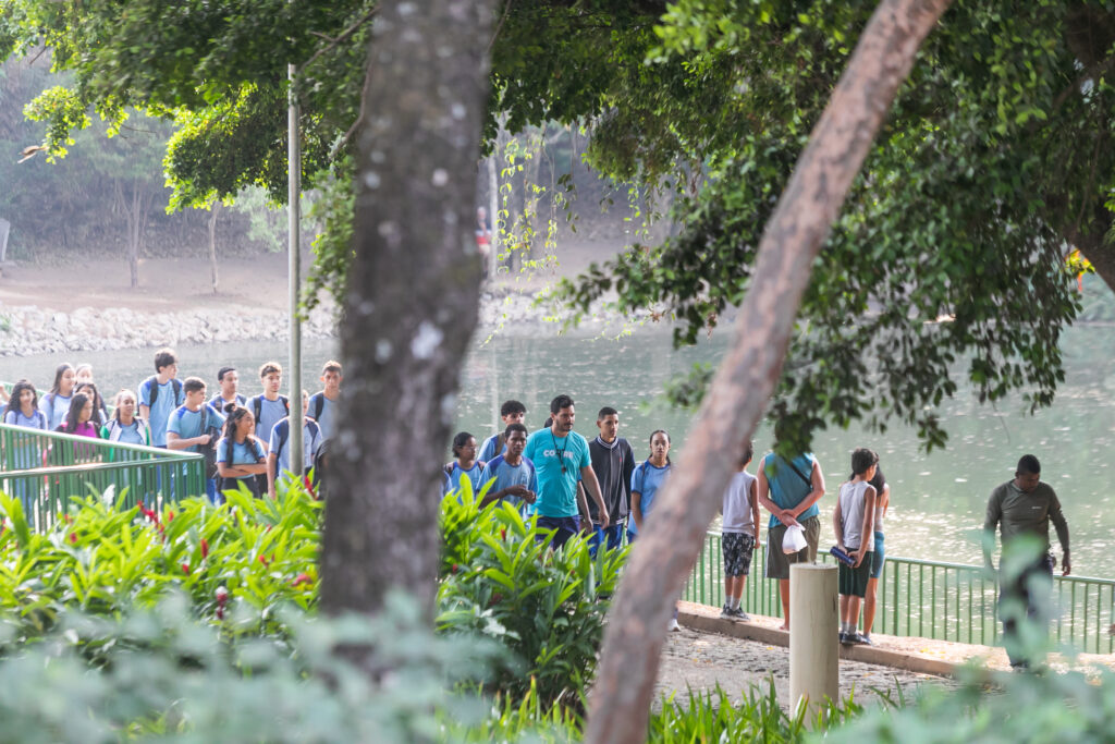Durante as vivências, os jovens participam de rodas de conversa sobre preservação, aprendem a interpretar o ambiente e a refletir sobre o impacto de suas ações no ecossistema local.